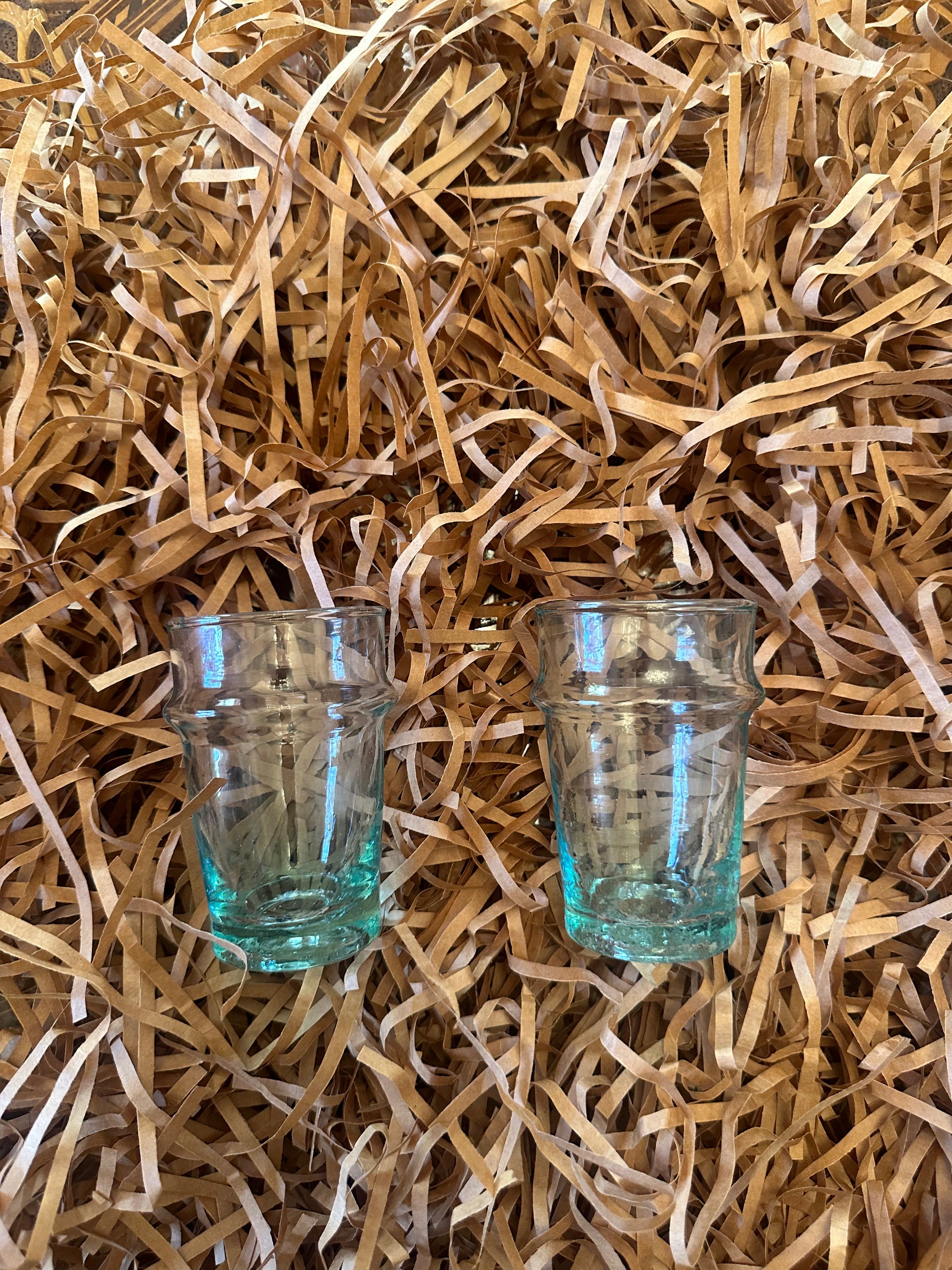 - 2 hand-blown Moroccan tea glasses (each glass unique)